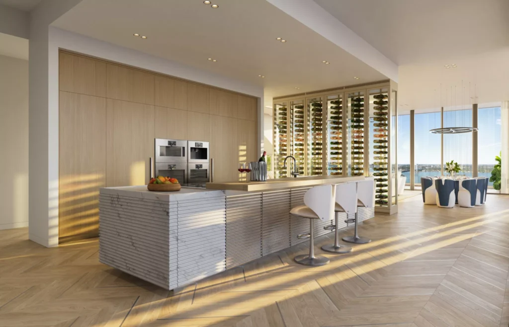 Vsak penthouse vključuje tudi vinski zid z 365 steklenicami – po eno za vsak dan v letu, kar se popolnoma ujema z življenjskim slogom brez kompromisov. Penthouse v vrednosti 30 milijonov dolarjev ima pet spalnic in šest kopalnic, skupno površino 1.133 m², od tega več kot 390 m² zunanjih bivalnih površin. Manjši penthouse (28,5 milijona dolarjev) meri 994 m², od tega 567 m² notranjega prostora, in ponuja štiri spalnice ter pet kopalnic.